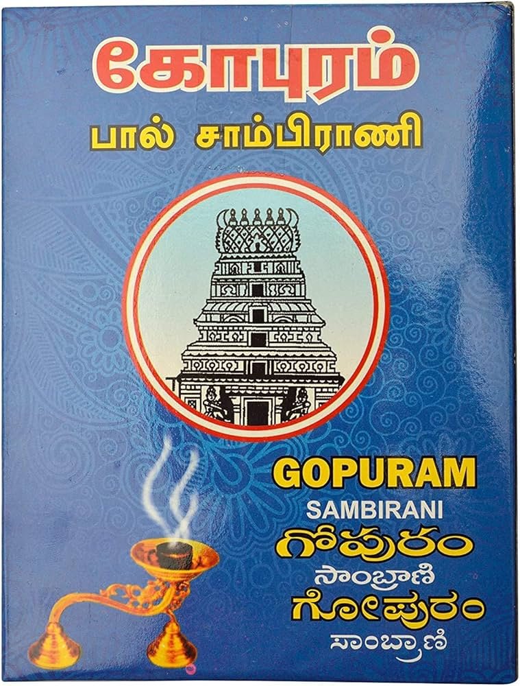 Gopuram Pal Sambrani is a premium-quality natural resin incense, traditionally used in Hindu pooja rituals for purification and spiritual upliftment. Made from pure cow dung cups infused with natural resins and herbs, it produces a thick, aromatic smoke that creates a calm and divine atmosphere.